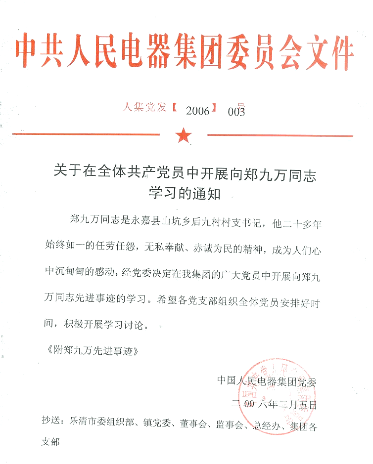 关于在全体共产党员中开展向郑九万同志学习的通知